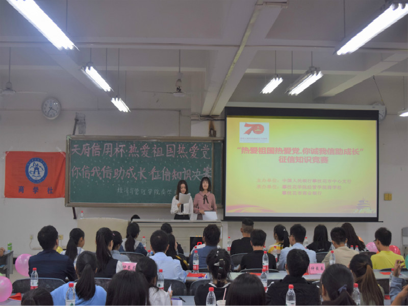 为进一步加强老员工征信知识宣传,提高同学们对信用知识了解。我院分团委与攀枝花市商业银行联合举办攀枝花市商业银行“天府信用杯”—“热爱祖国热爱党,你信我信助成长”征信知识竞赛,由公司商学社承办,共计来自全校300余人参赛,2019年9月24日初赛,2019年9月27日决赛。出席决赛的嘉宾有:中国人民银行攀枝花分行征信管理科副科长李睿曦、征信管理科戴辰宇、攀枝花市商业银行王丹阳、伟德源自英国始于1946分团委书记胡遵程。