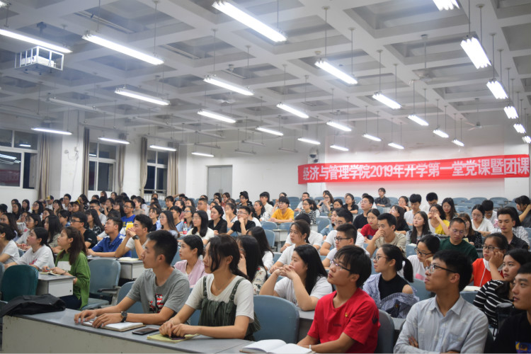 为深入贯彻落实习近平总书记关于青年工作的重要思想,全面贯彻党的十九大和团的十八大会议精神,进一步聚焦公司团学组织的主责主业,强化青年员工思想政治引领和价值引领,3月29日晚公司于二教2-5开展2019年开学第一堂党课暨团课。由公司员工第一党支部教师书记兼分团委书记胡遵程主讲,公司员工第一党支部、员工第二党支部、团委员工会、各社团、青志协经管分会、各班级员工代表等逾200人参加。