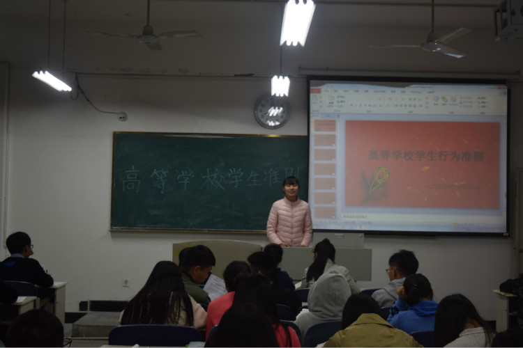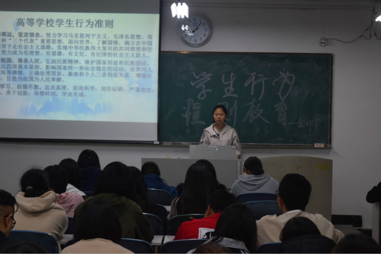 本次教育活动由各班班委组织进行,各班以PPT演讲形式,从坚定信念、遵纪守法、诚实守信、团结友爱、勤俭节约、强健体魄等方面开展学习教育活动,各班同学们现场学习氛围浓厚。