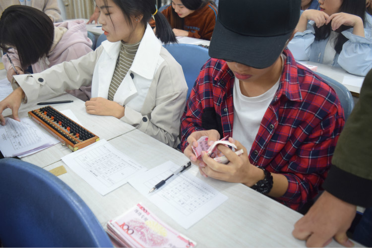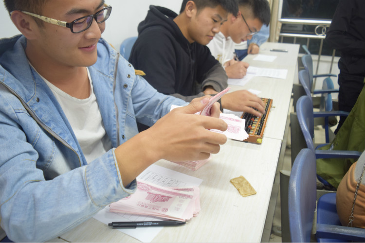 决赛分为记账凭证、珠算和点钞三个环节,比赛限时25分钟。中场环节进行财务会计专业知识抢答。紧张激烈的比赛,轻松活跃的互动环节,让同学们在快乐中学习,在学习中快乐。