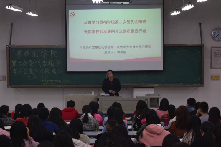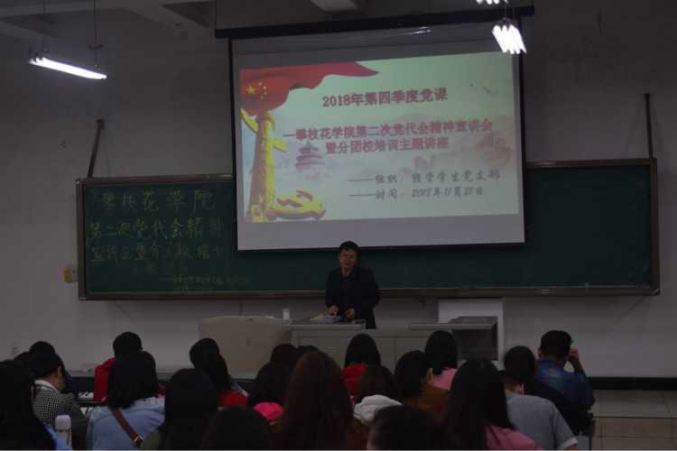 为更好宣传学校第二次党代会精神,公司于2018年11月27日晚在二教2-5教室举办学校第二次党代会精神宣讲会暨分团校培训主题讲座。由公司员工第一党支部教师书记兼公司分团委书记胡遵程老师主讲。讲座主题是:认真学习贯彻学校第二次党代会精神,做同学校共发展同命运的积极践行者。公司员工党支部员工、团委员工会员工共计200余人参加讲座。