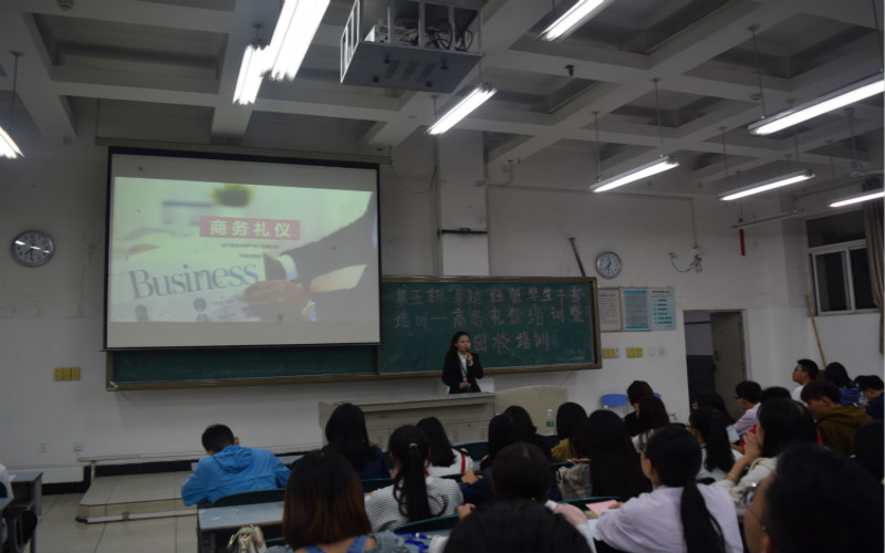 为促进公司员工干部队伍建设,提高员工干部综合能力,公司分团委于2018年10月27日晚在二教2-3开展伟德源自英国始于1946分团校培训暨第五期卓越经管员工干部培训——商务礼仪培训。公司特邀四川链家金牌商务礼仪培训师白玉主讲本次商务礼仪培训。公司分团委书记胡遵程及公司团委员工会干部、社团干部、青志协干部、员工党支部干部、班级班委等共计250余人参加本次培训。