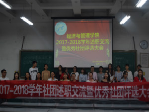 5月19日晚,公司于二教2-5举行2017-2018学年社团述职交流大会暨优秀社团评选大会。公司常青藤实践协会、物流管理学会、会计学会、国际经济与贸易学会、工商管理学会、青志协经管服务站、演讲与职场交流协会、财务管理学会、市场营销学会代表依次上台用PPT演讲方式总结本社团一年来工作。分团委书记胡遵程做总结发言。