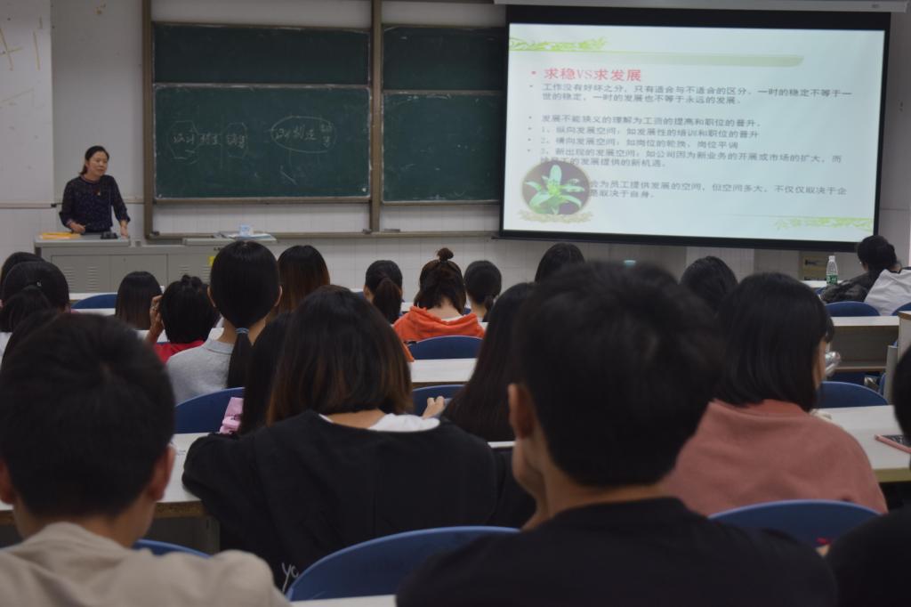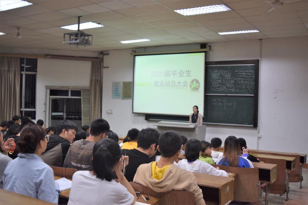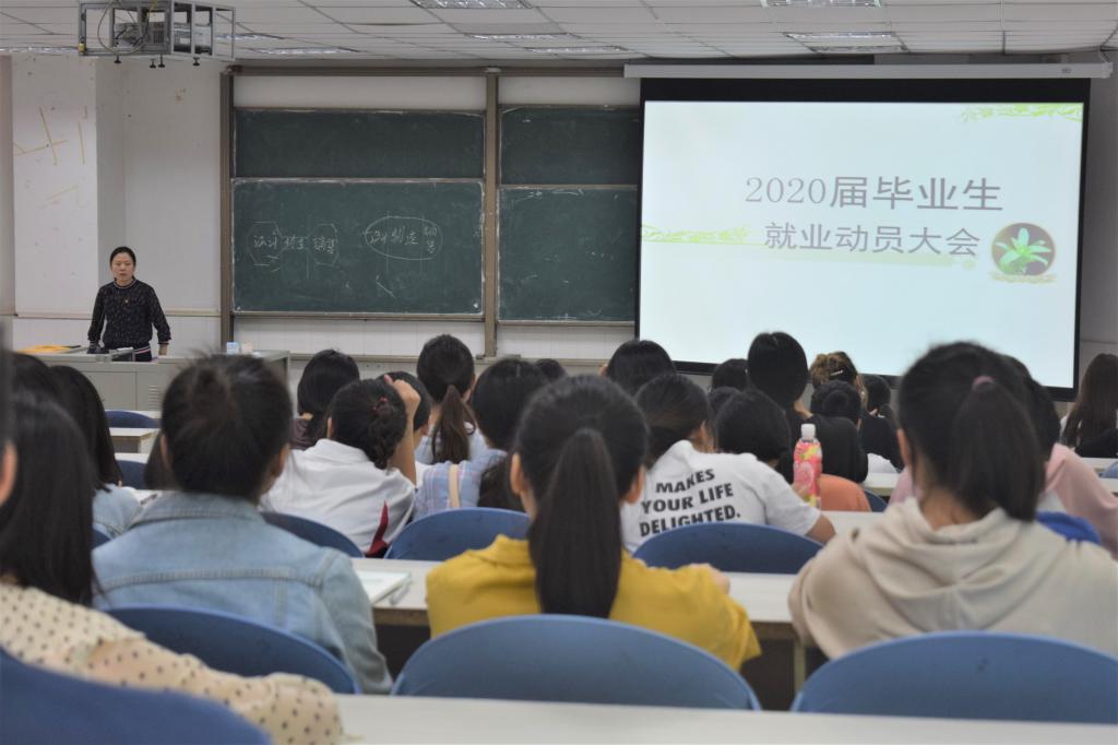 为帮助公司2020届毕业生了解目前就业形势和就业政策,引导毕业生们积极就业,进一步做好公司就业工作,10月24日晚,在一教1-2召开2016级国际经济与贸易、2016级市场营销、2016级物流管理及2016级工商管理专业就业动员大会,10月25日下午,我院在C教1-1教室召开2016级财务管理专业和2016级会计学专业就业动员大会。公司经理助理兼员工科科长朱艳、毕业班辅导员出席本次会议。