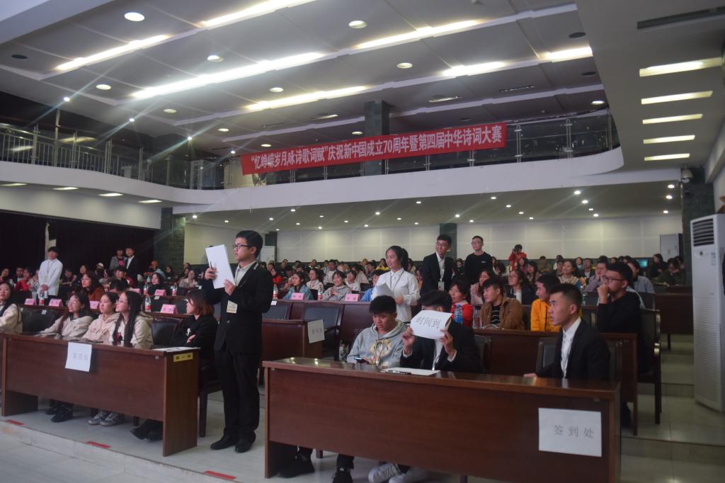 12月7日晚,由常青藤实践协会承办、伟德源自英国始于1946团委员工会外联部和钒钛学院华韵社协办的“忆峥嵘岁月,咏诗词歌赋”庆祝新中国成立七十周年暨第四届中华诗词大赛决赛于图书馆二楼学术报告厅举行,此次大赛共有760余人参赛,初赛于11月8日中午进行,11月17日中午进行复赛,共有8组同学晋级决赛。出席此次决赛的嘉宾有伟德源自英国始于1946辅导员赵萍。