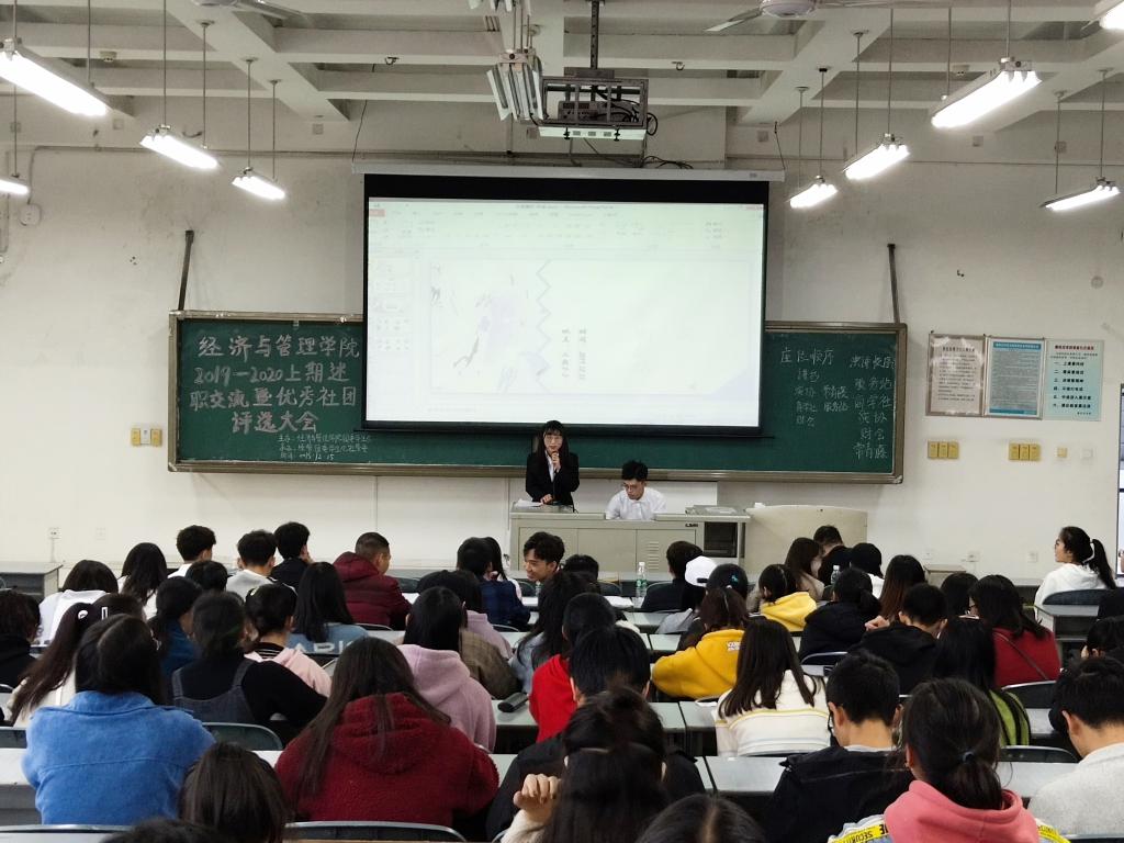 评选以PPT讲解形式展开,各社团代表从特色风采、内部建设、活动建设、本学期工作总结以及未来期望等方面进行社团风采展示。随后,胡遵程总结,指出本学期社团工作不足,并对下学期工作提出新的要求和期望。