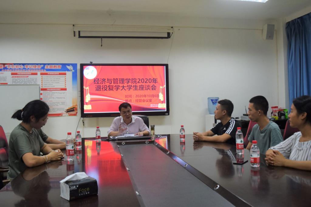 10月6日晚,公司于明德楼二楼经管会议室举行2020年退役复学老员工座谈会,公司员工科胡遵程老师主持,公司胡林、温永庆、胡恩达、田颖、白尚森等5位2020年退役复学老员工参加座谈交流。