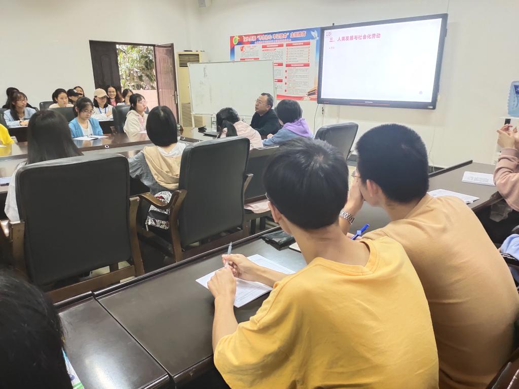 讲座上,彭方志结合事例及亲身经历从对立统一的普遍性、人类发展与社会化劳动、瘟疫与人类文明等方面为同学们讲解人性与理性、人类与自然的关系以及中华文明为何上下五千年没有中断等问题。期间,彭方志利用提问的方式与同学们积极互动,活跃讲座氛围的同时帮助同学们深刻理解讲座内容。