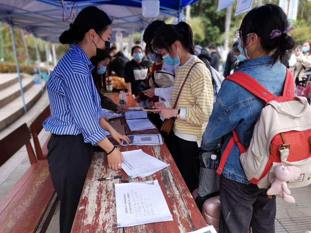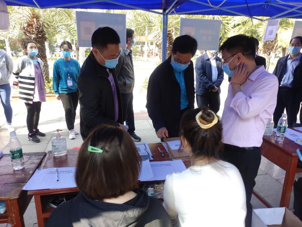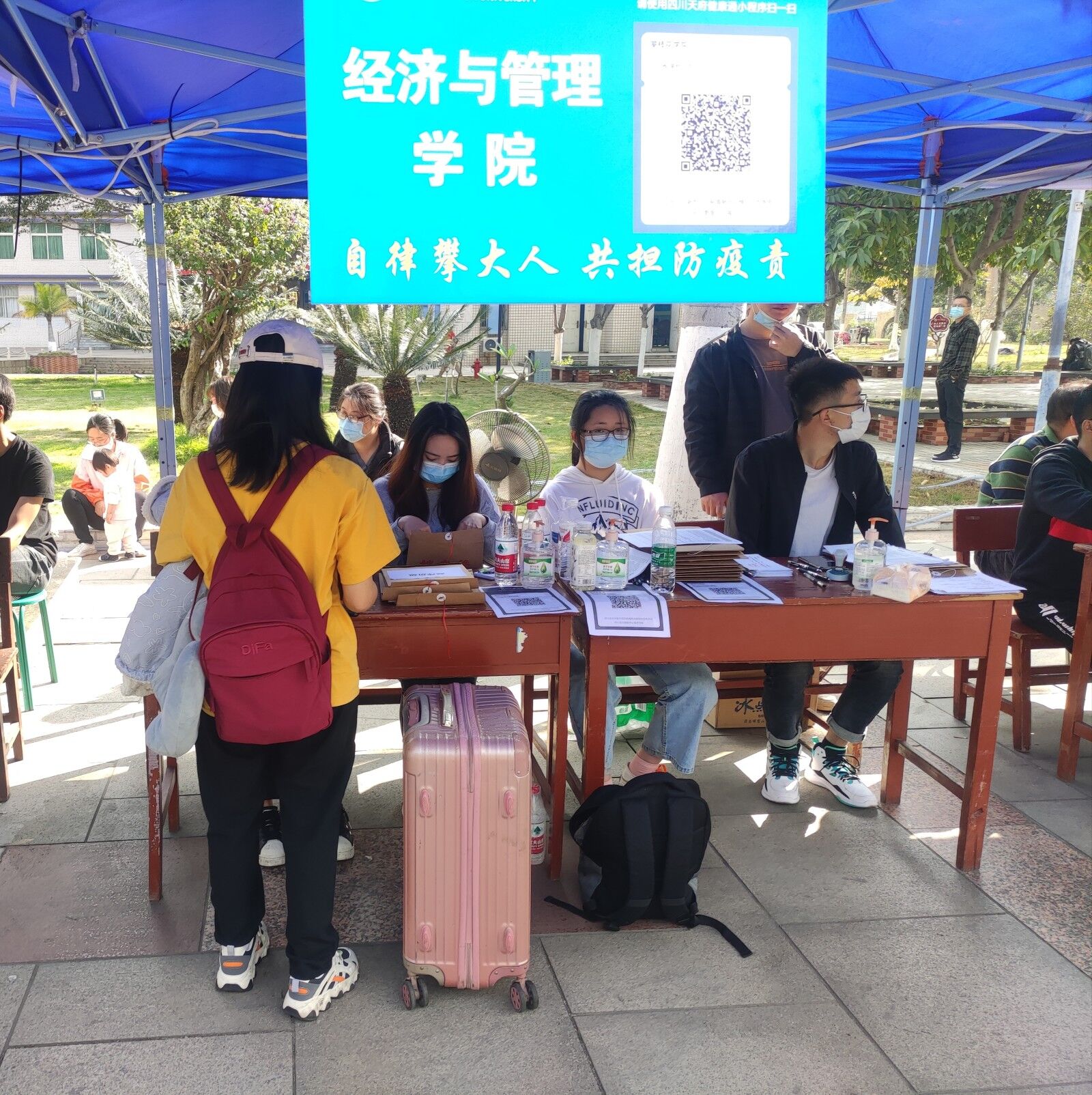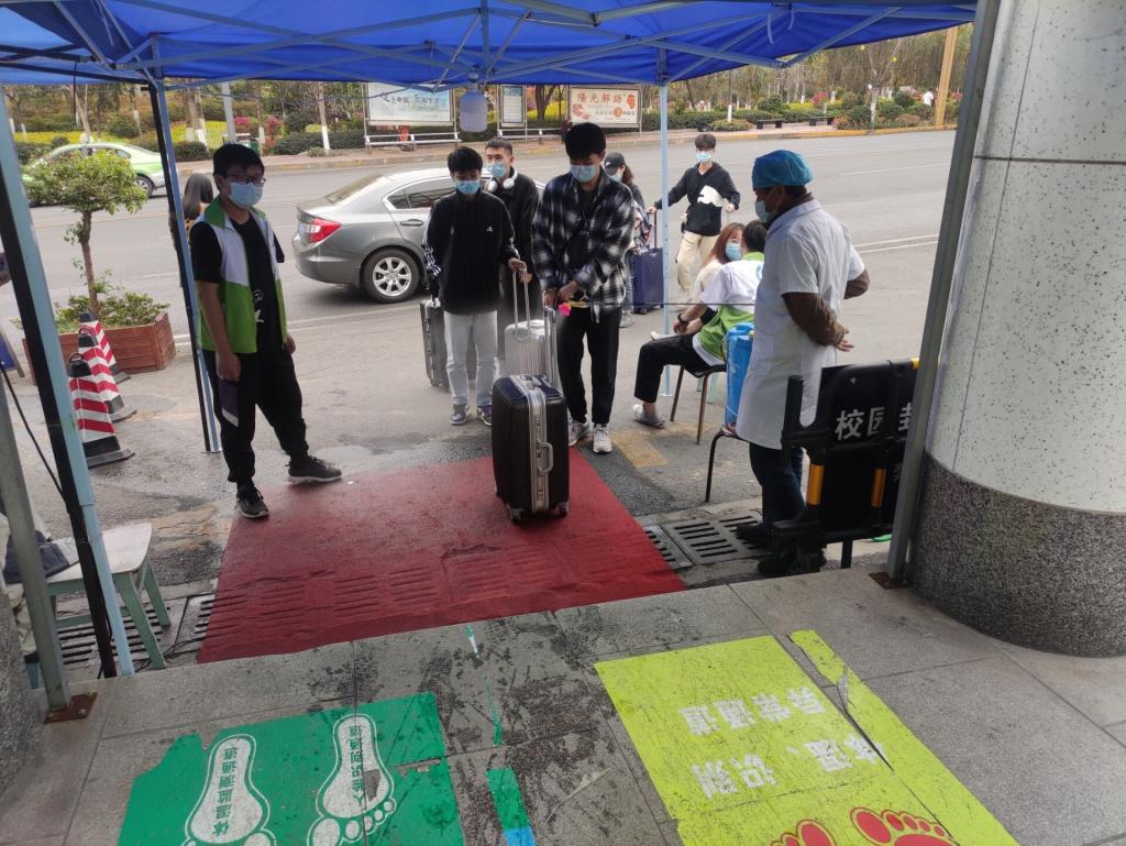 返校期间,同学们在老师与志愿者引导下,严格按照“消毒、测体温、查看健康码和行程卡、上交返校申请书以及签到”五步流程依次进行登记,完成返校报道。此外,学院各级领导莅临服务点进行视察,询问员工返校情况,并向志愿者表示亲切慰问。