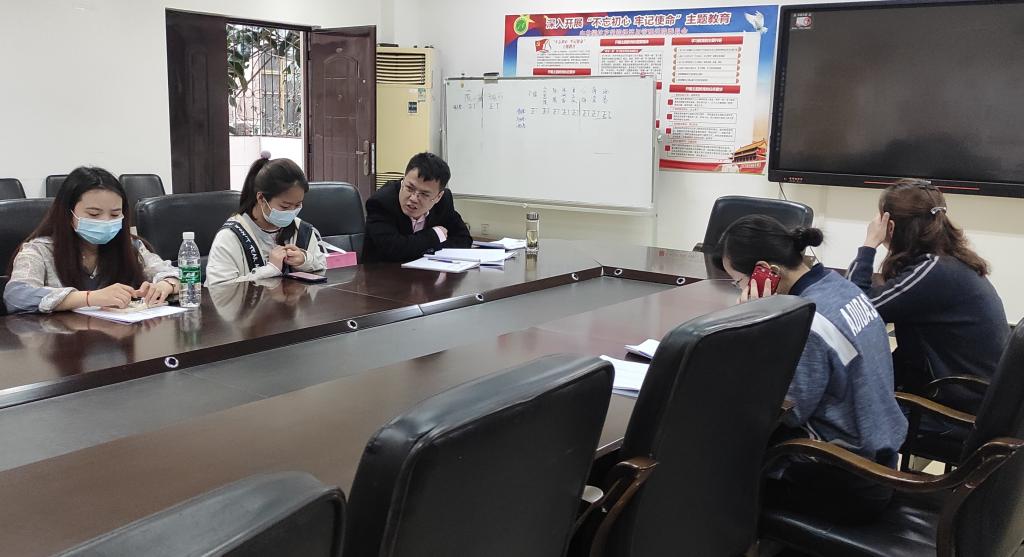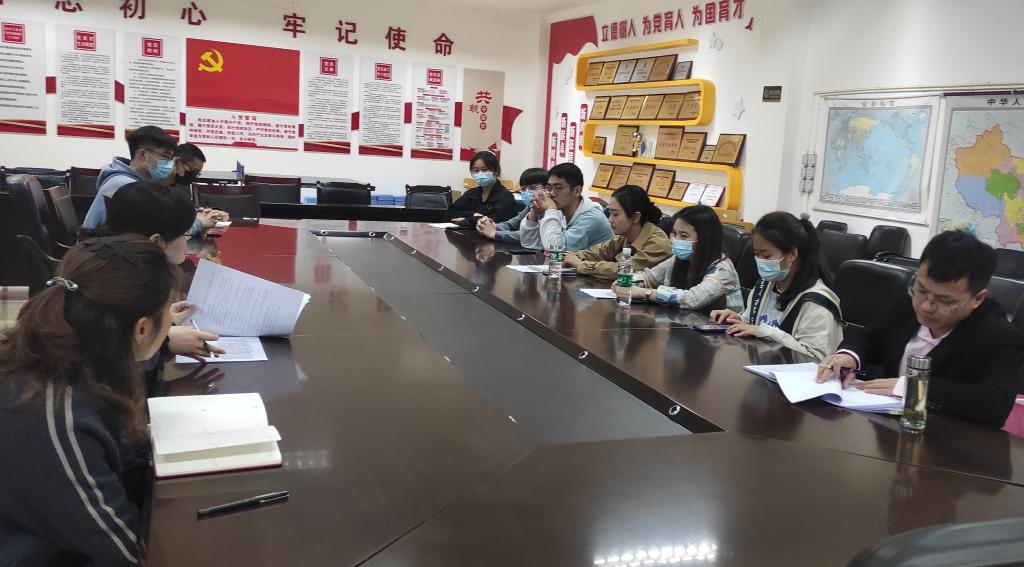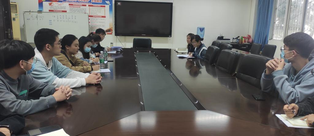 会议开始,唐彩虹对公司志愿者工作以及后勤服务进行安排,要求志愿者认真核实同学们的健康码、行程码并收集同学们的返校申请表。其次,朱艳就志愿者对返校材料的收集以及离校规定进行强调,希望志愿者们听从老师指挥,共同配合、认真落实相关工作。最后,胡遵程提醒各位志愿者在遇紧急事件时及时寻求老师帮助,并希望各志愿者认真工作。