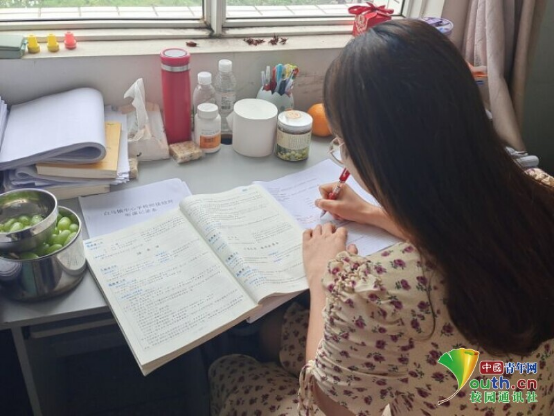 图为学校任课老师批改员工作业。中国青年网通讯员郑冬梅供图