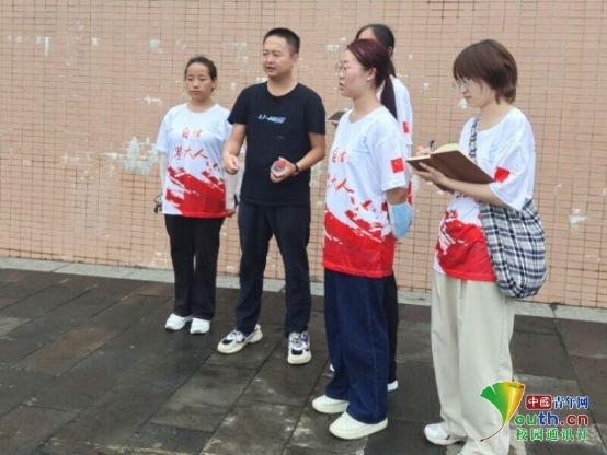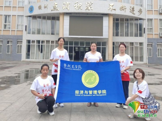 图为实践队在白马镇中心小学前合影留念。中国青年网通讯员沙依萍供图