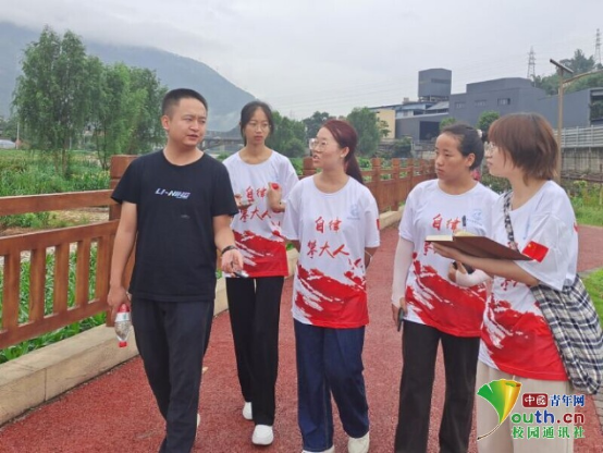 图为实践队和杨主任前往红旗河坝基地。中国青年网通讯员沙依萍供图