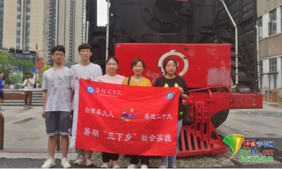 图为实践团队队员在火车头宣讲东郊记忆工业精神。中国青年网通讯员杨涛摄