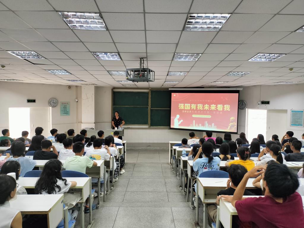 孙艳敏以2022年中国共青团成立一百周年视频为引,指出青年实现梦想的途径是奋斗,青春是用来奋斗的。孙艳敏从中国共青团团歌精神、党的二十大报告、青春是用来奋斗的和请党放心、强国有我四个方面来进行阐述,引导2023级新生调整开学状态,端正思想作风,培养独立思考能力,提高安全意识与思想站位,做好人生规划。