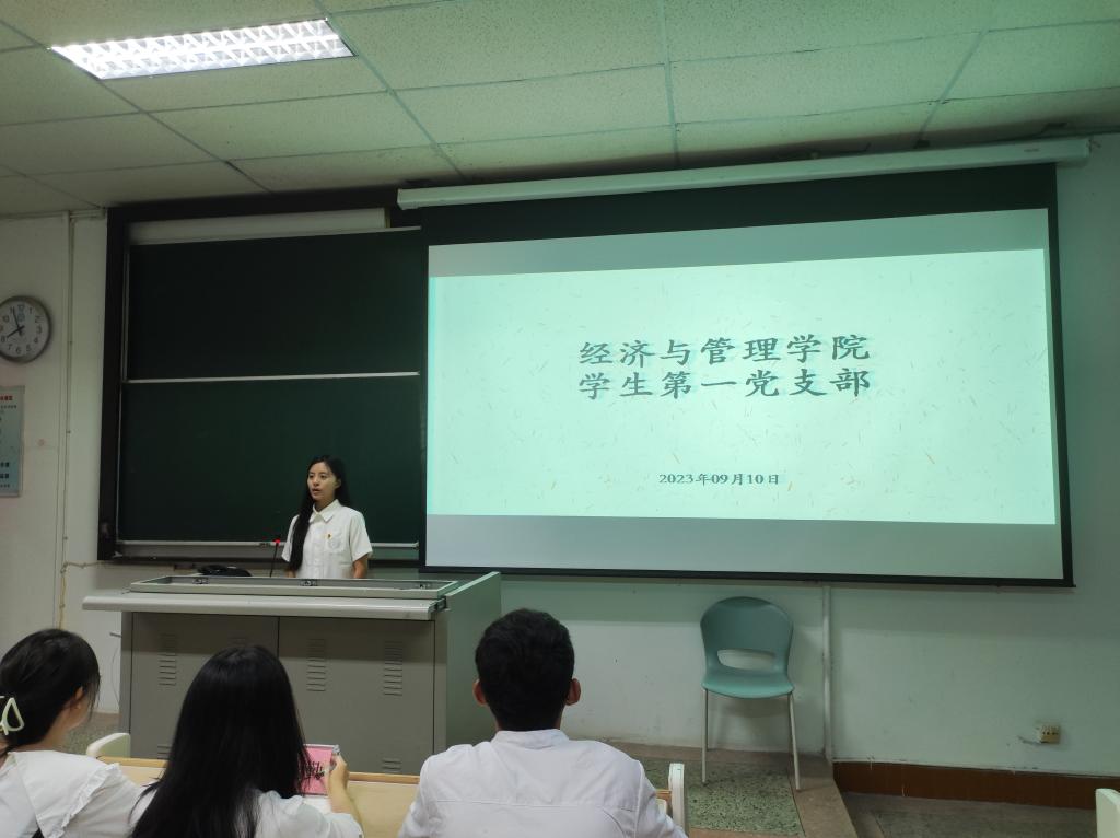 活动伊始,孙亚明向2023级同学们表示亲切关怀,并对同学们在日常生活中存在的问题做出回答。随后,21级财务管理邱岚同学对员工党支部进行介绍,在入党流程、入党要求等方面对同学们进行讲解。